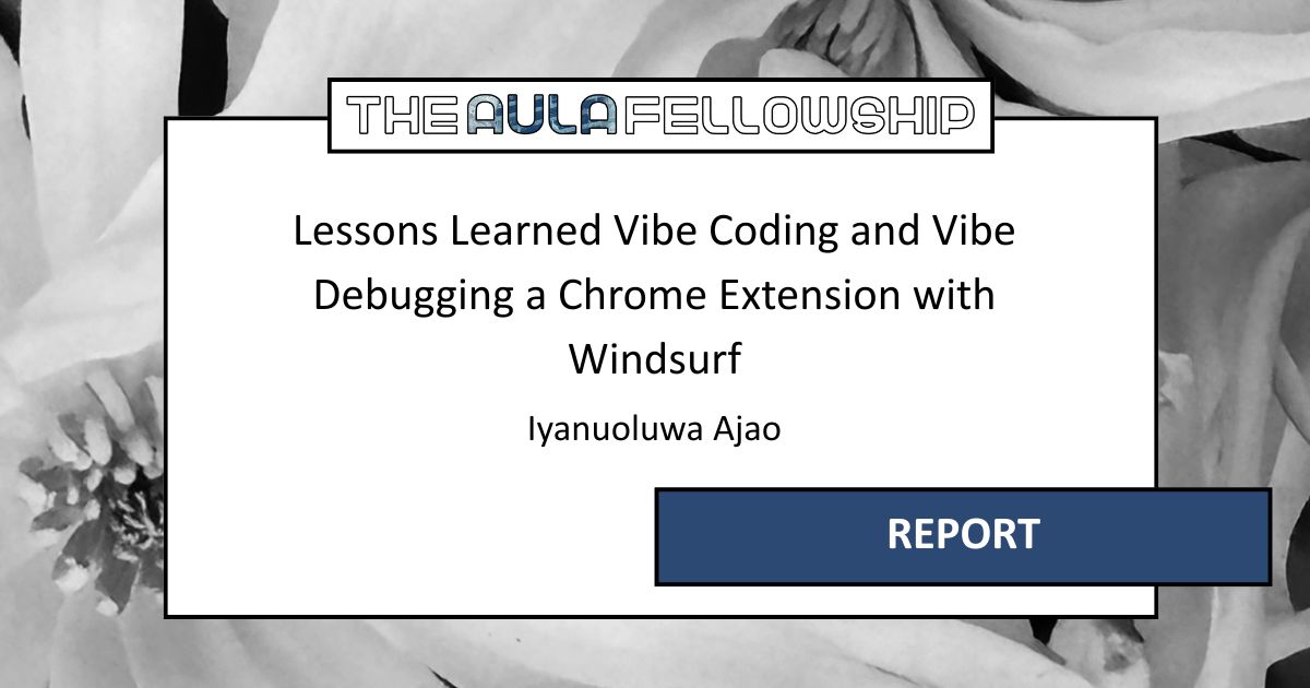 Join Aula Fellow Iyanuoluwa on Coding With AI with Tim O’Reilly of O’Reilly Media and Addy Osmani (Google) in this segment: “Lessons Learned Vibe Coding and Vibe Debugging a Chrome Extension with Windsurf”.